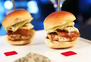 Very hip restaurant with some of the best fried chicken I've tasted. Steak skewers, mono fries and the salmon starters were fantastic. Atmosphere was very chill with great Jazz tunes literally spinning overhead.