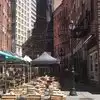 In Stone Street, the end nearest the park from where the ferries go to the Statue of Liberty you will find the street set up with tables from all the resturants. We eat at Mad Dog & Beans. It was great as you sit on tables with others and all end up chatting. Food abd drink was good and reasonable for central New York. Well worth having lunch there.