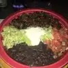 Called in here to try something different, and it certainly was that! The outside of this restaurant is all decked out in very colourful lights, but that's nothing to what you see on the inside. It was extremely colourful, with lovely multi coloured crockery on the tables. We were early enough so we can't judge the atmosphere as there was nobody else there when we arrived. We were seated at high stools and tables towards the front of the restaurant. I see from other reviewers that there is also seating upstairs. A huge bowl of tortilla chips with accompanying dips was brought to our table. We ordered Shrimp Alambre and a Chicken Torta for our meal. I have to admit, when I saw the Refried Beans on the plate I was really taken aback. They are black, in a black sauce, and looked like something you would sandwich bricks together with if you were building a house! I ate the rest of the meal, but I did struggle with it due to the Refried Beans. It was an experience to be in a very different type restaurant but I wouldn’t be in a hurry back.