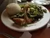 Delicious and fun, love the parasol covered ceiling! Service was slow, but accurate - I think our server was new and covering several tables.I had a red curry dish highlighted by pineapple - so good! My husband had a spicy catfish - 4 pepper alarm that we should have taken more seriously - next time we will see if we can take the heat down!