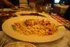 You get large size portions. They even have an offer that you buy one entree and get to take an order of pasta of your choice to go. This is great if you have a refrigerator and microwave in your room. Also take a free set of pictures. You can purchase larger ones, but the ones they take are really free.
