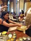 I lived in India for 16 years and it was a treat to find an authentic thali service in the US. Here, the experience is as important as the food. You are pampered from the moment you walk in until you leave. After the traditional hand-washing, the waitstaff whisks to and from filling the small bowls on your thali with delectable food. To the beginner, this can be a bit overwhelming but the managers will be happy to answer any questions. And as soon as one bowl is empty, one of the staff appears (almost as if waiting to serve you) to refill it should you desire. Eat to your heart's content--and than some! Meat eaters, with such a wide palette of flavors, textures and colors, you won't miss it. So treat yourself--experience Maharaja Bhog.