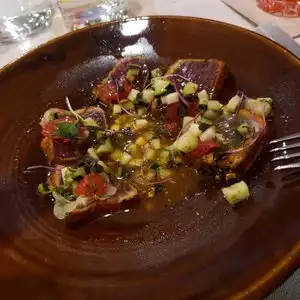 Had the Halibut. It was UNBELIEVABLY delicious. Great hip location. Great staff and owner Kim. I will come back one day! You must try.