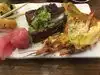 We ate here because my wife loves Tempura and this place was recommended. We arrived a little before noon and it was already jam packed with a lunch crowd, and more people kept coming in and a line had formed. We got there right before the overflow rush and were seating in only a few minutes. There is a lot of variety of food and it all seemed very fresh and good. I am not a fan of this type of food, but was able to find enough to eat an ok lunch. My wife loved the Tempura shrimp and vegetables, and said it was very good. They continually refilled the dishes with fresh food, The restaurant is in a shopping center and we had to find parking a little bit away from the restaurant by the grocery store since it was so crowded.