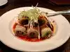 Summary: excellent close to authentic Chinese food, large portions, great service. If you love PF Chang, don’t eat here! Ambiance: industrial chic, dark lighting Hostess: We arrive shortly after opening time for dinner and were promptly seated upstairs. Bacon appetizer- served cold. Pork belly rolled with cucumber topped with spicy oil, broad bean sauce, and slivers of onion. Flavorful, spicy, and unique with hints of numbing peppercorns. Three Pepper Beaten Duck- lightly smoked, very flavorful served with dried peppers, celery, bell pepper, and green onion. Twice cooked pork- perfect! A heavy, oily, lightly spiced but perfectly cooked pork belly with onions, garlic, leeks, ginger, and numbing peppercorn. Fantastic and huge portion. Overall cleanliness: above average Bathroom cleanliness: below overage