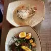I enjoyed the outdoor seating. Was served sticky rice with an olive dip to start. Waitress said it was their bread and butter. It was packed in a coconut leaf and looked so cute I didn’t want to unwrap it but glad I did. Yummy! I ordered the lemongrass chicken and before I could even finish the sticky rice, it arrived. I don’t know if they were trying to rush me out because I was by myself, but since I don’t like dining alone I didn’t mind. The meal was really good. Not the best Thai I’ve ever had but very tasty. The waitress was very nice and it was just what I needed after a day of traveling. Cute shops in the area, too, and I was able to shop a little before I ate (shops close early on Sunday).