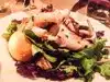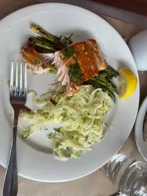 We really enjoyed our lunch here. I had a grilled calamari salad, which was delicious, and he had a seared tuna salad. We were very pleased with both of our lunches. The service was friendly, and we liked the reclaimed artifacts inside.
