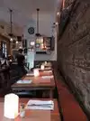 My girlfriend and I were walking around after dinner looking for a bar to have a glass of wine. It was snowing and beautiful outside. We had passed this bar once and thought it looked cool so we wanted to try . There were no seats at the bar but the manager said we could sit on one of the tables if we wanted. It was perfect. Great atmosphere and great vibe. Looked more like a local crowed. Very relaxed. Will go back for sure.
