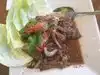 We haven't been her in a year or so but decided to try it again, as we use to live in the neighborhood and loved it. We still do. Not quite as refined as our Thai food we had last week, but the tastes were great. We ordered Nua Nam Tok, fresh spring rolls, and chicken satay. We agreed that all were very good but the satay was the weak link. But we managed to eat everything...no left overs...which is unheard of. We forgot to say that we wanted everything served at the same time but to our amazement here they come....all at the same time. So we started out happy. The Nua Nam Tok had so much beef and as we requested light on the fish sauce. It was great. The veggie spring rolls made for us with no shrimp or pork were awesome and the chicken satay was very good. Both had wonderful tasting dipping sauces. Service was great. Food prices were average, but ours was a bit more because we ordered more than normal....but our fault and we ate every bite!