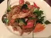 We had a good meal for dinner. I started with an appetizer, Angel Wings ($8.00). There were 2 very large stuffed wings. It was served with a small cucumber salad. It was delicious. I had the shrimp massaman ($17.00). It was very good. The portion was not very large but it was very good. My wife had the famous seafood noodles ($19.00). It was basically Pad Thai with shrimp & scallops. It was delicious & the portion was a good size. Overall the meal was good not excellent.