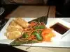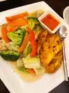I had a grilled chicken & vegetables entree and the basil rolls. The chicken was rubbery with no flavor, did not taste grilled. The basil rolls were OK. Both my dishes came with the same sweet ginger sauce although the menu noted differently.