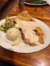 Visited on a Saturday around 1:30. Restaurant was packed meaning it was extremely loud. Our party of 3 had a hard time with table conversation. Appetizer of Fried Green Tomatoes was tasty and came out quick. It took awhile for our main selection to come out. Server was attentive and courteous. Brisket Burger was top notch. Chicken Fried Chicken was great. Chicken Fried Steak was a disappointment. Meat was chewy throughout. Tasted fatty. Server was attentive and courteous. I would come back but not on a Saturday and perhaps later in the day. Also I would not order Chicken Fried Steak again.
