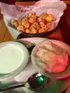 Everyone and food great I had buffalo wing and salad with bile cheese dressing fast and cinnamon coffe great