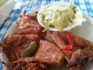 My wife and I stopped in while visiting Houston. The building looks like a dump. Don't judge this book by the cover. I ordered the fried pork chop dinner. It came with two sides, I chose green beans and mashed potatoes. It was late, and they were out of several sides. My wife ordered the smothered pork chops and green beans and mac & cheese. They had warned me when I ordered that the fried pork chops took a little longer, but that was not a problem. While we were waiting they brought out the best cornbread I have ever put in my mouth, and I have put a lot in it! It was amazing. When they brought out the main course, both of our plates had two huge pork chops on them. Way too much food for one person, especially after eating that wonderful cornbread. It was delicious and well worth the wait and the price. I will go back next trip to Houston.