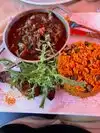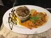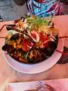 We were visiting New York celebrating my fiances birthday. I love paella so this is what I had. I wasn't impressed with it, the flavors were off and it was very under seasoned. The huge lobster and crab claw on top made it awkward to eat. It also had calamari, clams, oysters shrimp and mussels. They also provided a lemon wedge, but it tasted like it was overpowered with lemon juice already. It was definitely authentic but I was very disappointed in the taste.