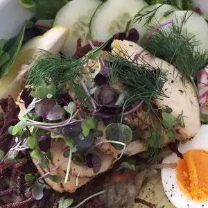 Great salads and desserts, the BEST almond croissants this side of Paris, great lunch/brunch space upstairs, informal, stylish (love the decor), friendly staff, REAL porcelain dishes (WOW!) .... only thing missing to top this is a loyalty program ... (they have LOTS of regulars). No complaints (and I'm picky ...).