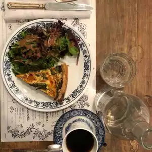 Had a quick breakfast there. Nice service, not crowded, so didn’t take long to get my order. Wish they had more vegetarian/vegan options but other than that lovely decor and great coffee!