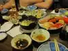 We went here for a friend's birthday. We got reservations for 8:30 and we arrived right on time and got seated promptly. It's a small place on a corner with a small area for seating plus tatami rooms. We had a nice tatami room to sit in with interesting décor, and anime style art. I was pretty hungy so my wife ordered shabu shabu for both of us, pork for her and chicken for me. This is a dish of meat and veggies and clear noodles in a light broth, and you dip the stuff in a sauce. We also had appetizers such as Karaage, kaki fried (oysters) and tempura veggies, which were all good, and my friends had sukiyaki and I tried some of theirs too. The shabu I thought was kind of bland even it's supposed to be until you add the sauce, but it was definitely filling. I actually liked the sukiyaki better. Bringing the food into the tatami room is sort of odd for the waitresses as they have to go around and over you to serve it. One waitress actually spilled a dish on one of our friends, but they cleaned it up and replaced the dish. Food was ordered pretty quickly and it was all fresh and good. Prices are actually decent for Japanese food compared to other places. Just so you know if there is more than 4 in your party you can only have one check for paying. Could possibly come again to try other foods.