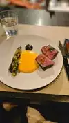 Another Danny Meyers amazing experience. Loved the cocktails and the Som with the red beard from Linquist was super helpful and very attentive as was the entire staff! We started with the beat starter and the pork with egg appetizers which both look like they were plated for a photography shoot for a culinary magazine. Then we shared the lobster and wagu beef entrees that we incredible. The lobster totaly sweet and moist. The waygu cooked to perfection with shitake mushrooms and the butter lobster stunning with incredible carrots and sides. The souffle was out of the world stunning with salted caramel at the end. And the end was really the little donuts with the check. Wow. It can't be better than this!