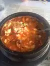 Stopped by for dinner and it was already crowded, able to snag the last table for 2 people and these tables are close together, ie: approx 8 inches apart from the next table! Menu is on the table, under the glass top. Server came quickly with glass of water, and was able to take our order shortly. Ban chae came quickly with our order shortly thereafter. Seafood pancake is full of tasty ingredients but it was gritty in texture. Japchae was tasty and always delicious. The seafood tofu soup was spicy, for medium spice and tasty. Still leftovers to take home. Wished the server would walk around and fill our water glasses more frequently, instead of trying to wave and whistle to catch their attention. This restaurant gets a lot of patrons, so come early or put your name on the list and wait. Prices are reasonable.
