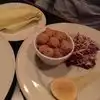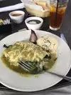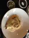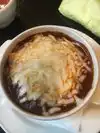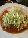 Fantastic chicken flautas with Suiza sauce and rice, a baked onion section and a little guacamole!! Really good! My Vegan friend and I shared an appetizer of guacamole at half price during happy hour and she enjoyed a great salad for her entree, too! Wonderful atmosphere and food and great service from Jody!