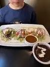 I ordered grilled fish tacos that came with maybe 2 or 3 ounces of fish for both tacos. They serve them deconstructed so you have to sparingly a lot fish to each tortilla they bring. I guess all the beans and rice are supposed to be enough. Their chips weren’t that great either.