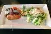 Tried the salmon burger, which was surprisingly very good. The sweet potato french fries were delicious. The place was crowded but the wait staff got everyone in and out in a timely fashion. My only complaint, the bathroom was slightly disgusting. Staff may want to periodically check/clean throughout the day.