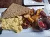Stopped for breakfast on the hotel's recommendation. Breakfast was typical. The potatoes did not seem to be freshly made. Had to ask for coffee refills and it wasn't busy at the time. Lots of seating with views for the city street. Had the service been a bit better and the potatoes hotter, it would have rated a 4