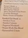 Fantastic menu , full of choices, very inventive and fresh The vegetable curry was outstanding and light , the kale salad perfection next time i want to try the farmer's board and the burger I am coming back !
