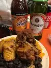 Great food, large quantity. Two of the people in the family had the naked chicken. It was falling off the bone tender. The fried chicken was a bit overcooked but still very good. Rice and beans very flavorful. My daughter had the steak sandwich and said it was good also.