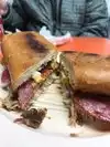That is one delicious Cuban sandwich they serve. They add pepperoni, so it is just a bit saltier than your standard cubano. Coffee is good, too, but make sure to ask them not to steam the milk too long or you will get milk that is nearly boiling. Very inexpensive. Friendly staff.