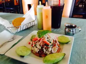 This is a small casual place, very Mexicano. The waitresses speak broken English but communicate very well. Not upscale atmosphere, but clean. Clean bathrooms. The Ceviche De Pescado is very fresh, excellent taste. My wife and I had El de La Casa, which is shown under "Tacos" and has sautéed shrimp with spinach, mushrooms , bacon and garlic. It turns out these are what we think of as enchiladas, as they do not have what we think of as "crispy tacos." I asked he waitress later to make sure we had been served the correct order. Nonetheless, all was delicioso!