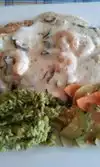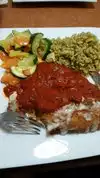 When we got there , there was one table filled so we were worried about the good reviews we had read but it was wonderful! I got the shrimp wrapped in bacon with cheese and sauce. It was so delicious . It came with grilled veggies and cilantro rice. I told my husband that I could have just eaten the rice and been happy. Mine was only $13.95 - what a bargain I'm ready to go back right now.
