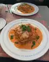We stopped by prior to our reservation time, and were immediately seated. The place was bustling with a lunch crowd. We were offered a variety of waters, and requested tap. Bread was served and it was good with the butter. Ordered the Ravioli Alla Primavera and easily finished it. Different servers stopped by to take our orders, replenish the waters, deliver the food, and pick up plates afterward. Hope tips are shared across the different servers.