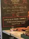 A friend recommended the Market Grill when visiting Pike Place Market and it did not disappoint! We ordered two blackened salmon sandwiches and the were amazing. The fresh blackened salmon, lettuce, and tomato along with grilled onions and aïoli on a fire toasted baguette made for a perfect combination. The staff was great and it was fun to sit at the counter and watch them prepare the food. You can also add a pin to a world map on the wall to show where you are from.