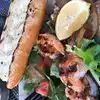 Great food salmon sandwich and prawn sandwich both delicious very basic seating but worth the stop good service
