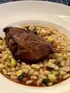 Outstandingly excellent French food, and with very friendly service. Delightful décor, but rather too noisy inside, but we ate at a table outside so no a problem for us. For starter I had asparagus with Hollandaise sauce and morrells (I skipped the egg, which was on offer). It was light and perfect. My wife had the humus as a starter, which she pronounced delicious. We both had the confit de canard with an excellent ragout of flageolet beans as a perfect accompaniment. Overall, an outstanding meal. The restaurant was rather full and service a little slow, which did not bother us one bit but some theatergoers got a little antsy.
