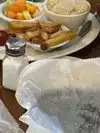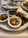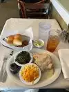 We stopped here for southern dishes because the restaurant seemed to be very popular and a tried and true establishment. When we arrived, it took a couple of minutes for someone to greet us (even though there was no line and 2 staff members were at the front desk), so I went back outside to take photos. When I returned, my cousin and I were quickly greeted and seated. We were given a sheet of paper to write our order -- from starters, to soups and salads, entries, desserts, etc. While we waited, we received complimentary pot likkor (the juice from cooked greens) and a corn muffin. My cousin ordered chicken with some sides. I ordered a vegetarian platter -- greens, black-eyed peas, macaroni and cheese, and cheese grits. All were quite good, but I didn't care much for the grits. We also ordered and shared the fried green tomatoes. They were thick slices of tomatoes covered in panko bread crumbs and deep fried. They lacked seasoning and flavor, so I wouldn't recommend them. The dining atmosphere was laid back and people are friendly. It's a nice place for traditional southern food in a family restaurant.