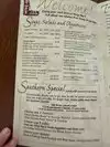 Fried chicken. Chicken fried steak. Sides were great fried green tomatoes. Peach cobbler. Bread pudding!!!!!!!!! Great southern food