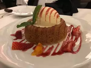 The waiter presumed I only wanted a salad. I’m not sure why. To order the rest of my meal it took some time to get his attention. I ordered the halibut which was as dry as the Sahara. They offered me a lemon butter garlic sauce to compensate for the dryness but it was still dry. I added more butter which made it a bit better. They did comp the dessert. However, I was genuinely disappointed in the mediocrity of an expensive meal.