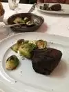 The major seating area is amazing and worth looking at before you are seated. The fillets where prefect. But be sure to confirm how you wanted it prepared. Medium rare is very rare. The wait staff is very helpful with this. Bread serviced. We split a baked potato and Brussels sprouts. Ok so you really should have to have the butter cake just once