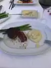 Wow! I have never been to a restaurant with service as impeccable as this place! When the food arrived, it was as ordered, hot and delicious. The best part was that they individually served all the sides to each person at the table - all at the same time so everyone could start eating at the same time. The food was absolutely amazing! I am definitely coming back!! Our table overlooked the mall. The design of the cantilevered space was so unique! We ordered ribeye and filet Oscar, mushrooms, asparagus, and augrautin potatoes. The portion sizes were very large, but so delicious we tried to finish it all!