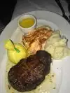 I made the mistake of going here only half hungry. In fact, I ordered the 6 pz petit filet. The steak was excellent! My problem was the salad and sides. The three of us ordered a wedge salad to split. We should have split it with the next table. This thing was huge and must have had 1/2 of bacon on it! And our mac and cheese! Even with the waiter scooping out a generous portion for each of us, there was more than half a dish left! And the dessert! The butter cake in no way resembled a slice - it was a complete cake with a giant scoop if ice cream on it and a whole separate bowl of whipped cream! I implore you - if you're doing here, starve yourself for 3 days beforehand or you will never finish the portions! Along with the amazing piano player and impeccable service, this place is a five star restaurant!!