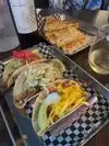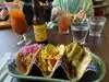 Tasty tacos and chips and trio of salsas. Shrimp tacos spicy but excellent, matador beef tacos excellent and healthy proportioned. Smallish table so not a ton of room for additional plates on the tables for sharing. Pricey is the only reason it isn't 5 stars.