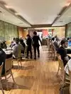 Full of people, cannot get in without reservations. It is a little noisy. Service is very good and the best of it is the Sushi. They have good desserts too.