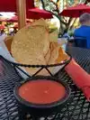 I like the atmosphere and the outdoor seating. I had a taco al carbon and a cheese enchilada - both were very good. Their special dip - Bob’s something - was great. I did not care for the chips they were corn chips and very thick. The salsa was ok.