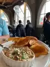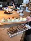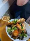 Looked hopeful and fun but after an hour we still had no food. It took 30 min just to get drinks. Everyone was super friendly but it was sooo slow and the food which should have been awesome was fine. Fish was definitely overcooked. We were hoping for the best seafood ever seeing that we were above a fish market but it just didn’t turn out that way;(