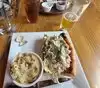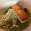 Great location on second floor with seating by open windows . Friendly staff . The only thing below average were the deviled eggs that were suggested as a good appetizer. No seasoning used in the stuffing. An item, olive, kimchi etc was on each egg. 4 hungry adults ate 5 of 6 eggs. Don’t bother. The fishwiches were huge and came with a large salad. Enjoyed by all. The rice bowl recommended by our hosts and the waiter as a great choice lost my interest quickly. I wouldn’t order again.