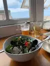 The restaurant was crowded so we ate at the bar.I ordered the porkbelly rice bowl which was very good but immediately wished I had ordered the fish sandwich which was outstanding. Loved enjoying a glass of wine from their extensive wine list while also enjoying an open air view of Elliott Bay.