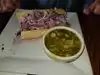 We booked for lunch at 1:00 and the table was ready on a Wednesday, while some walk-ups ahead of us didn't bother to leave their names, so the wait must have been a bit. The kind of menu I appreciate. Maybe 8 interesting sandwich choices and four salads. With that kind of limited items one can generally count all ingredients being fresh, and good value because they will be able to serve pretty much what they buy and don't have to charge for a lot of unserved food. My wife ordered the fish-wich & I did the porkbelly. We both very much enjoyed our selections. They came with a choice of soups (2), green salad, or potato salad. My wife's green salad was large and tasty. The potato salad was boring to the point I wouldn't have taken seconds at a famiiy picnic. I'll order the greens next time. My sandwich, however was luscious and came half open-face with both the slices of fresno peppers and large sprigs of cilantro right on top, so one could remove them, which was perfect for me as I don't like how cilantro dominates other flavors, and about half the peppers were just right for my taste. The crisp white from Crete complemented my sandwich perfectly, and my wife enjoyed her Cotes de Provence rosé. Excellent service. Food came in good time. Not inexpensive, but good value.